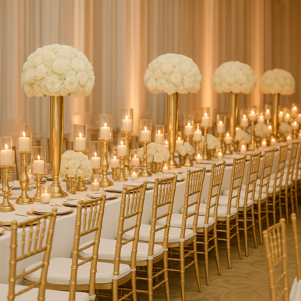 Faites briller vos réceptions avec notre chaise Chiavari dorée pour un souvenir éblouissant
