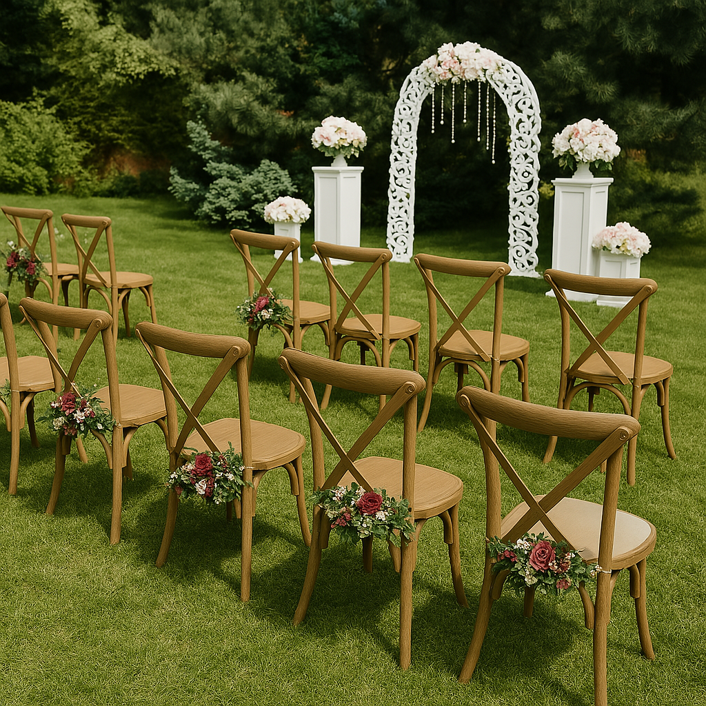 Laissez-vous séduire par notre Chaise Croisée en Résine Chêne Blond, une merveille de design qui combine charme rustique et élégance contemporaine. Avec des dimensions de 44,5 cm de large, 40 cm de profondeur et 90 cm de hauteur, cette chaise offre un confort optimal tout en ajoutant une touche de chaleur à votre décoration. Son design "Knock Down" facilite le montage et le transport, et son plateau étanche en fait un choix pratique pour tout type d'événement. Parfaite pour les mariages champêtres, les réceptions en plein air ou les dîners élégants, la Chaise Croisée en Résine Chêne Blond est la promesse d'un décor accueillant et raffiné.